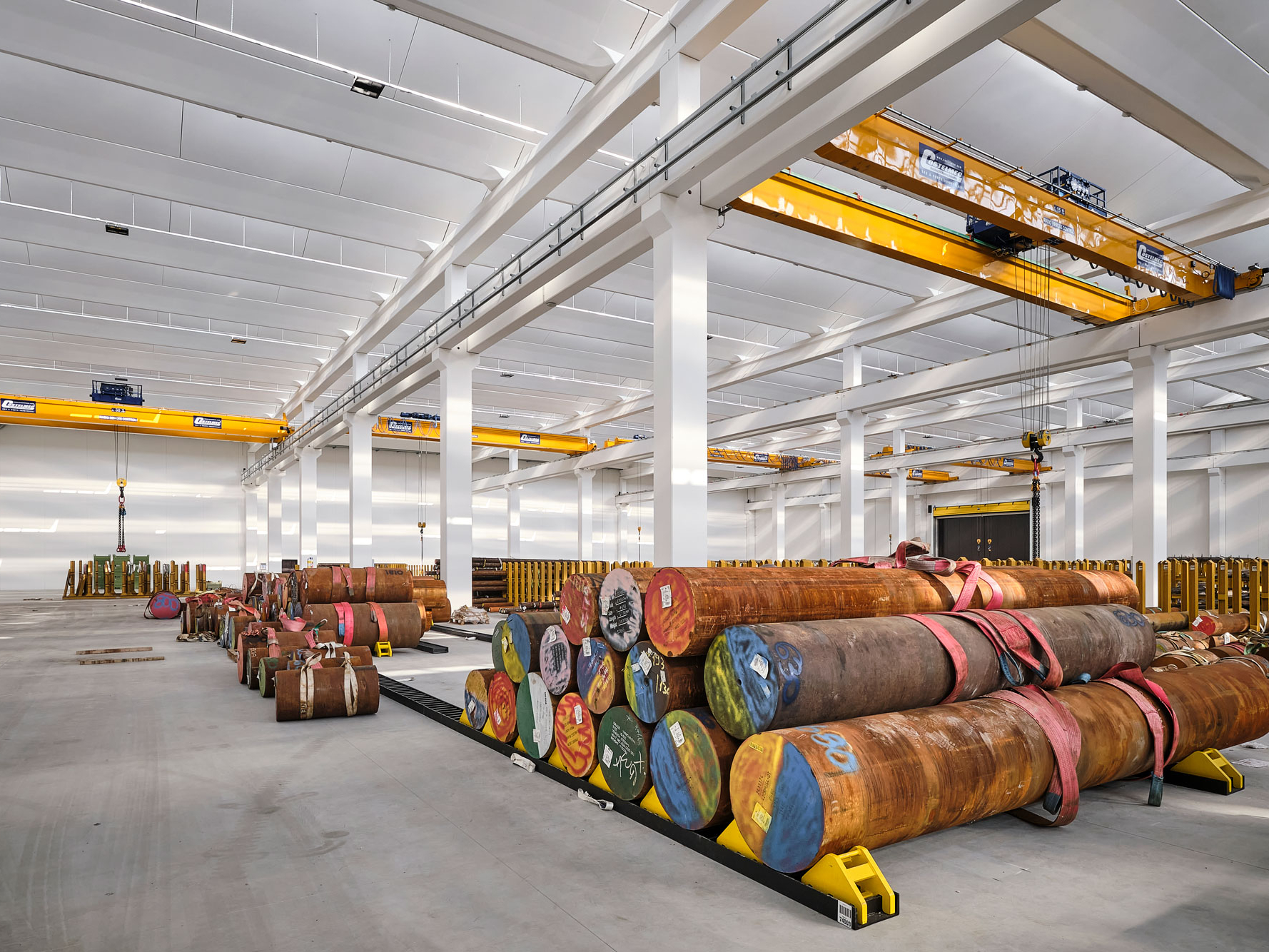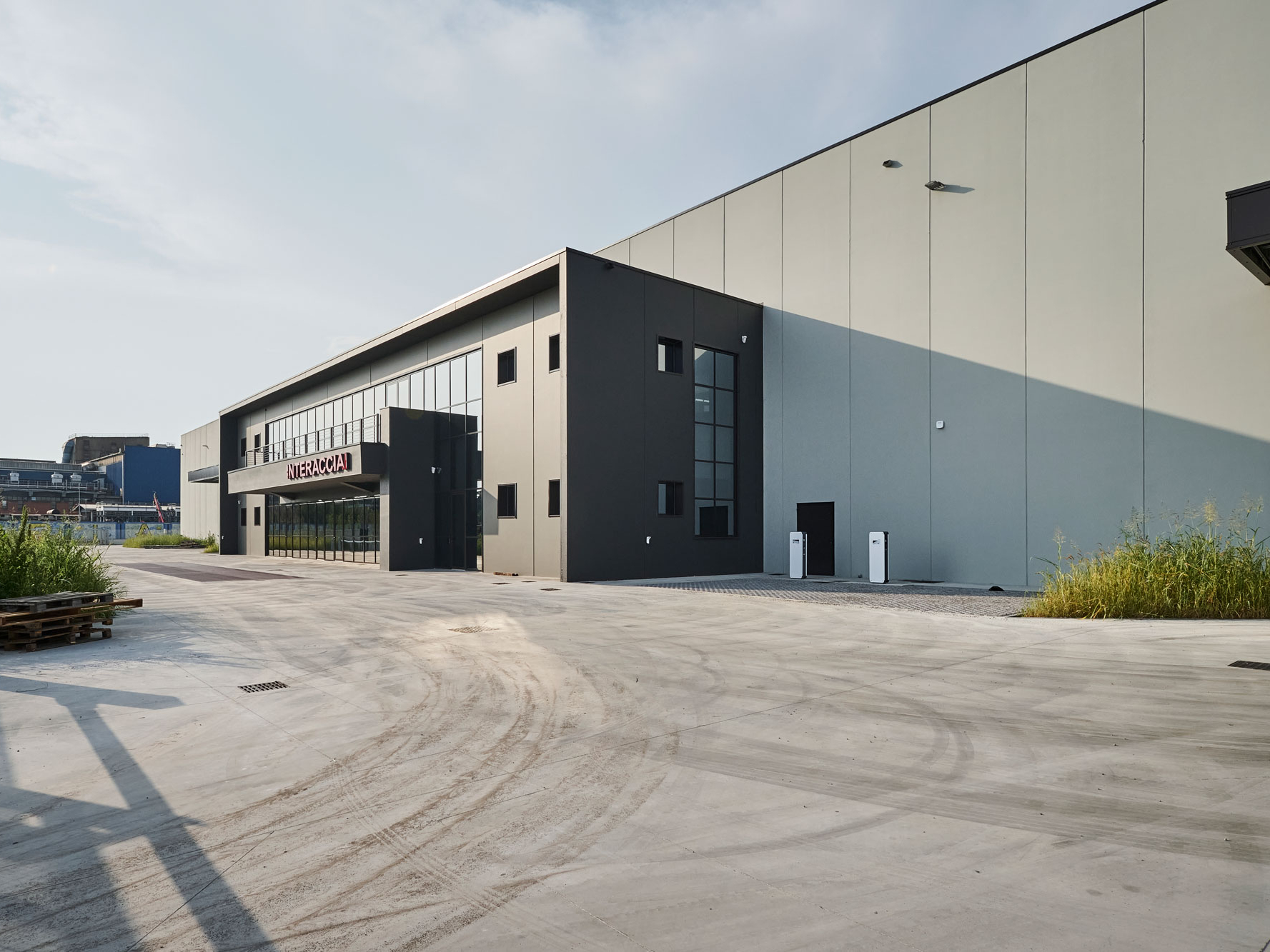 Truzzi ha realizzato per Interacciai, specializzata nella distribuzione di acciai speciali, un complesso industriale di 11.000 m², comprendente un ampio capannone produttivo e una palazzina uffici.