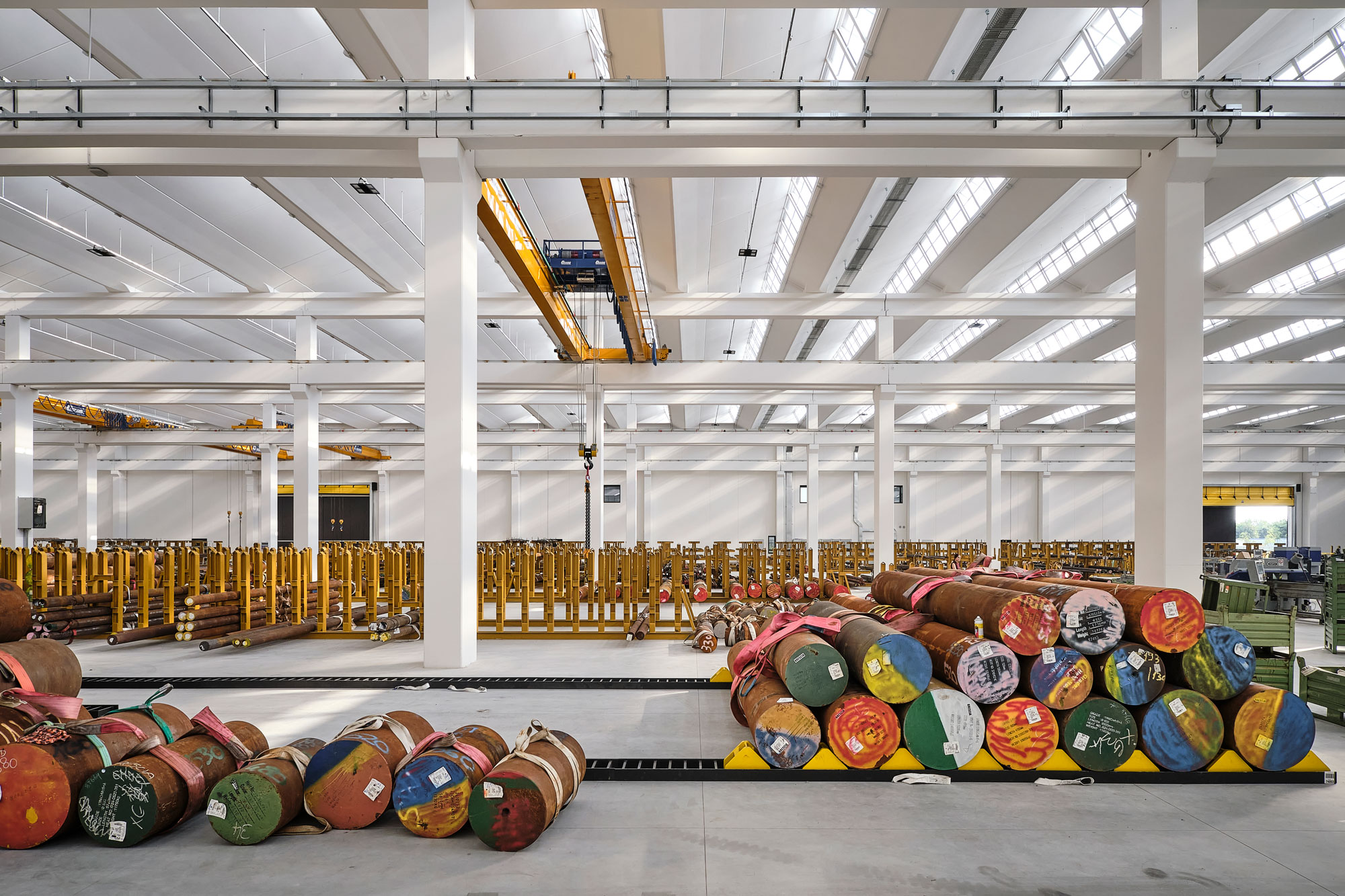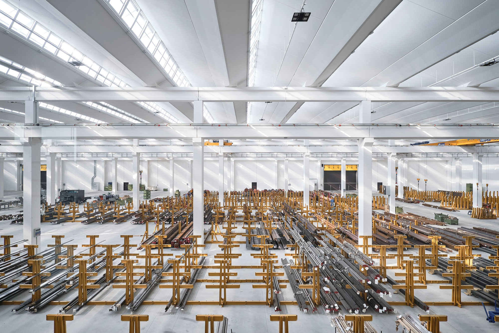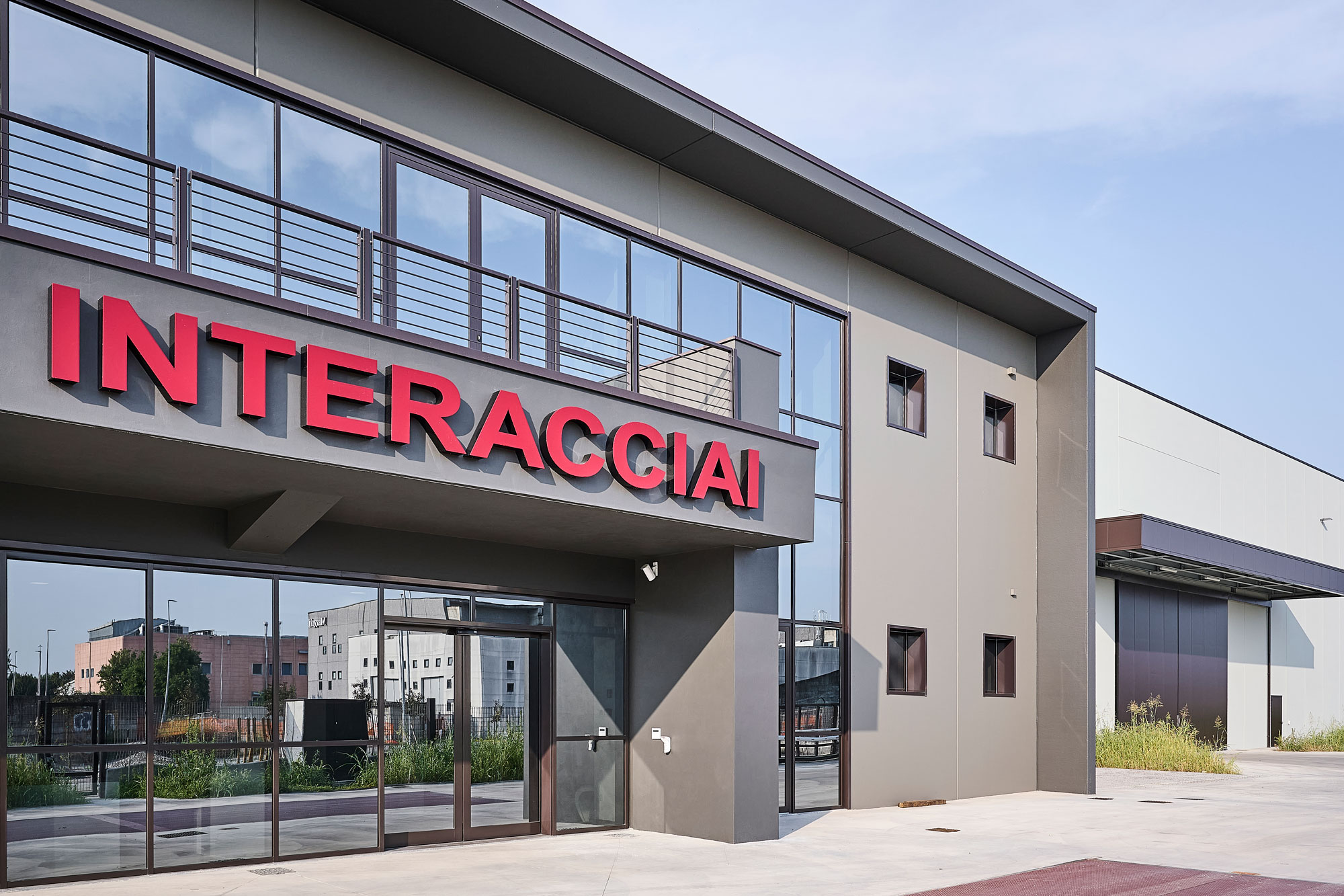 Truzzi ha realizzato per Interacciai, specializzata nella distribuzione di acciai speciali, un complesso industriale di 11.000 m², comprendente un ampio capannone produttivo e una palazzina uffici.